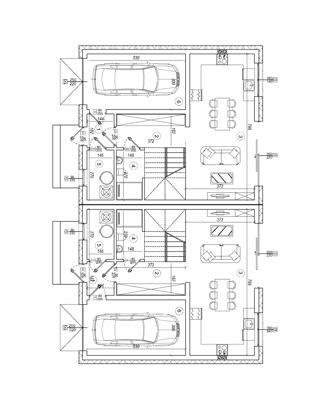 Dla mieszkańców zaprojektowano łącznie 12 miejsc postojowych – po 2 miejsca na każdy budynek. Miejsca parkingowe mają wymiary 2,5 x 5 m i są przystosowane do parkowania samochodów osobowych.