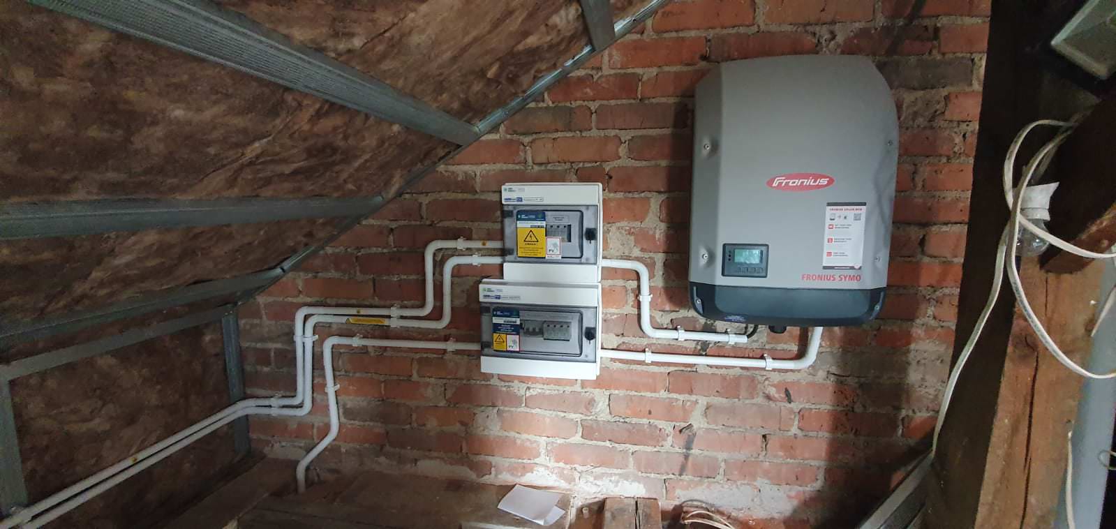 W tej realizacji zamontowano 18 paneli fotowoltaicznych firmy Jinko, każdy o mocy 455 W, co daje łączną moc instalacji na poziomie 8,19 kWp. System uzupełniono o falownik Fronius 7.0-3-M, który zapewnia niezawodne działanie i optymalne zarządzanie energią w instalacji.
