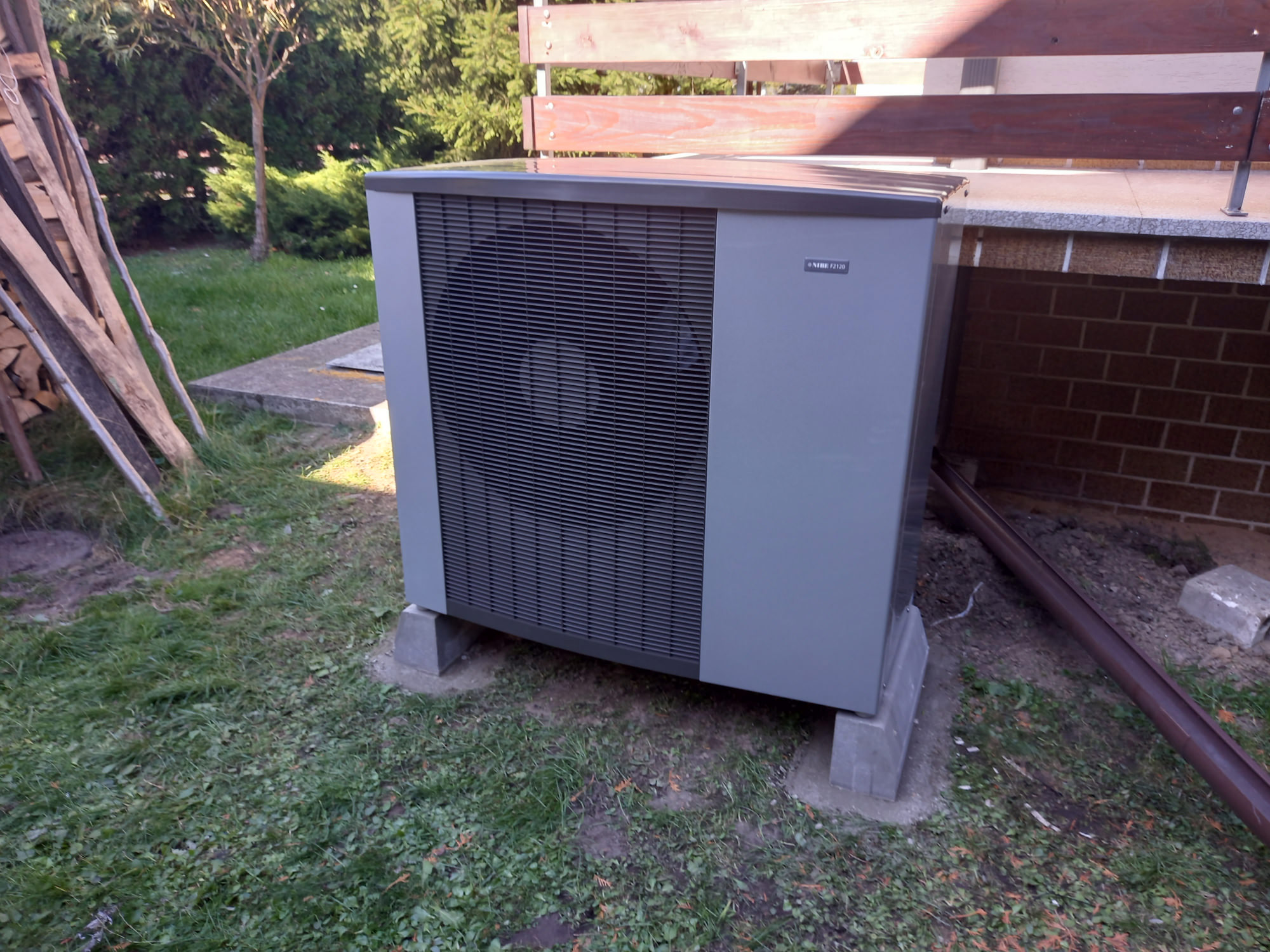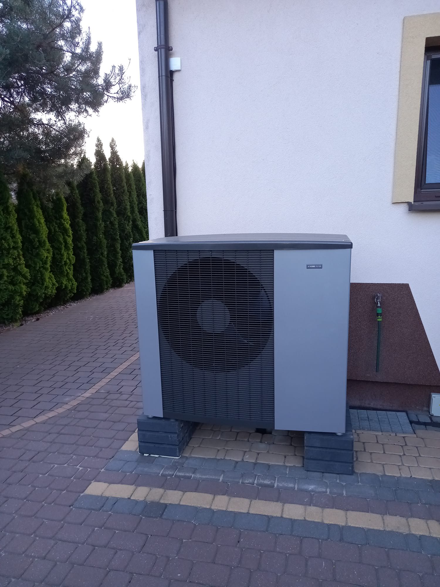 W tej realizacji zamontowano powietrzną pompę ciepła typu monoblock Nibe F2120-12 o mocy grzewczej 9,8 kW…