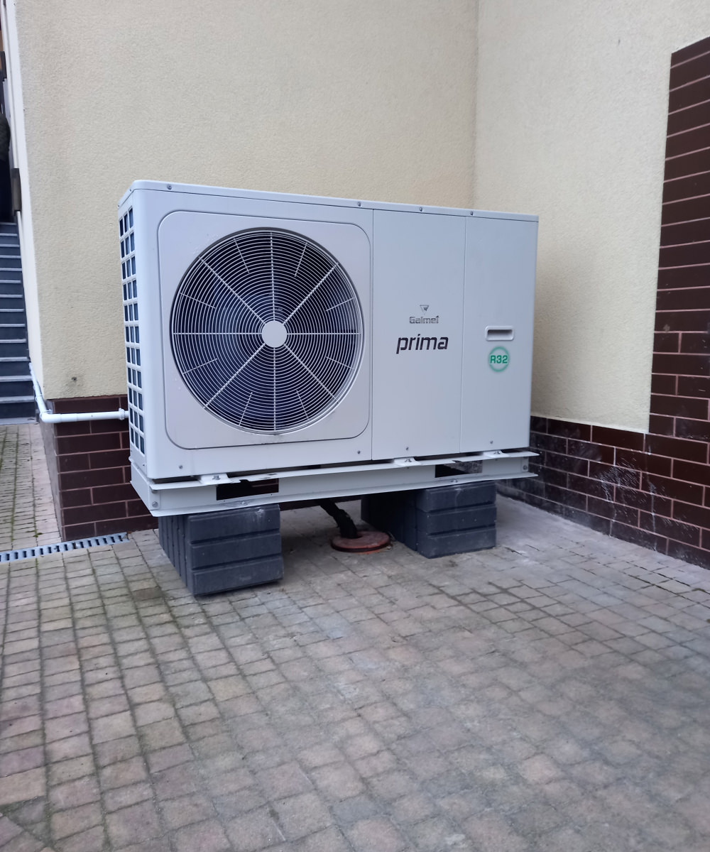 W ramach tej realizacji przeprowadzono demontaż starego pieca typu „śmieciuch” i zastąpiono go nowoczesną pompą ciepła Rotenso Aquami o mocy